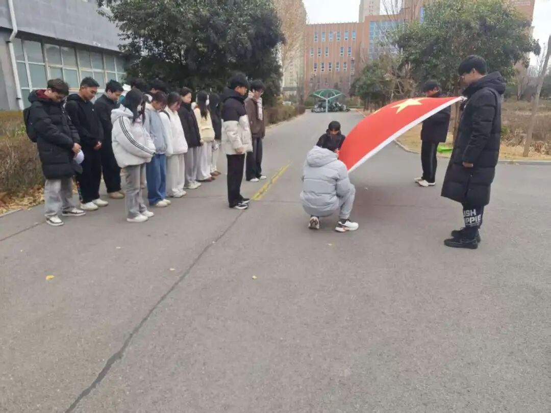 为铭记民族伤痛,缅怀遇难同胞,学生党员面向国旗肃立默哀,用沉静的敬意缅怀南京大屠杀死难同胞与所有为民族独立献出生命的英雄先辈。微风拂过,五星红旗静静飘扬,仿佛在诉说着山河无恙的来之不易,更坚定了师生们“勿忘国殇,吾辈自强”的信念。默哀仪式后,学子们纷纷表示,站在国旗下的这一刻,深刻体会到历史赋予青年的责任,唯有铭记苦难,方能砥砺前行。