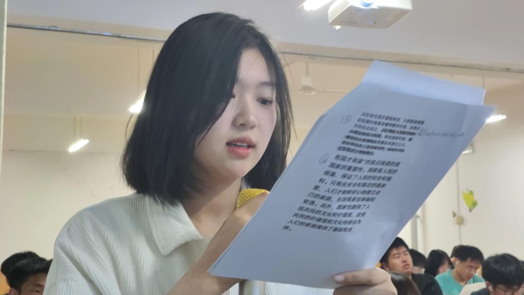 辩论正式拉开帷幕,主持人简单介绍比赛流程和规则及辩题相关背景资料,选手结合自己的辩题进行自我介绍。开篇立论环节,双方一辩表达了自己对辩题的理解。他们思路请晰,引经据典,妙语连珠,字字珠玑,博得现场观众掌声一片。在最精彩的自由辩论环节中,双方辨手交替发言,全神贯注抓住突破口,针对对方的漏洞进行反驳,一针见血。正反双方激烈对决,他们在思想上正面交锋,在逻辑上你来我往,据理力争,为在场观众献上一场高质量辩论。
