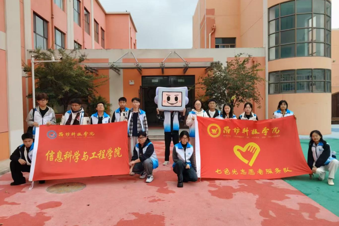 10 月 16 日下午 2 时,潍坊科技学院信息科学与工程学院七色光志愿服务队,在大学城幼儿园开展 “数智启航,网安同行之定格童真” 志愿服务活动,以解决幼儿园专业拍摄支持缺失问题,助力幼儿留存纯真成长记忆。