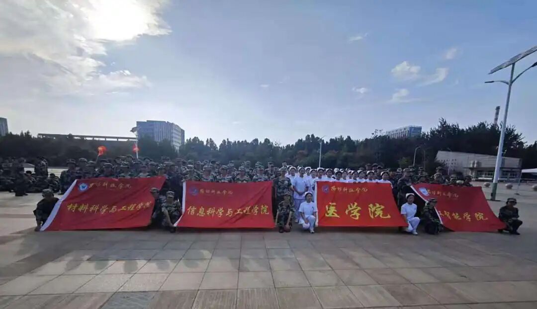 飞翔广场上,身着军训服的新生早早聚集,满是对急救知识的期待。医学院学生身着白大褂、头戴护士帽,提前摆放好模拟人、急救箱等器材,做好活动准备。