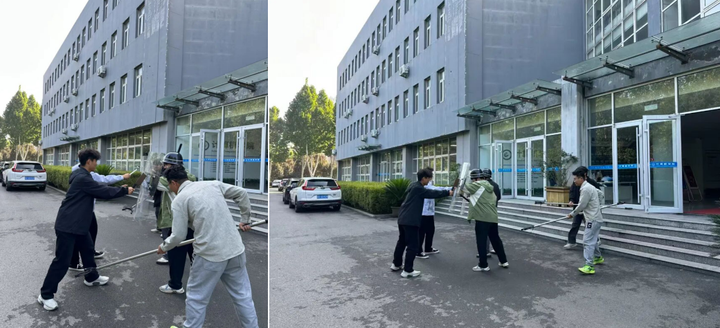除了宏观的演练,学院还面向师生代表和全体安保人员开展了专项技能培训。培训内容包括防暴钢叉、盾牌、警棍等防护器械的正确使用方法,以及面对暴力袭击时的基本自卫和逃生技巧。在专业人员的指导下,参训人员进行了实操练习,掌握了关键性的防护技能。同学们纷纷表示,这样的培训非常“接地气”,学到了在危急时刻保护自己、帮助他人的实用知识。