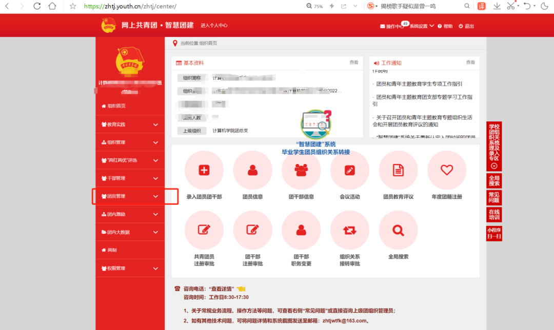 1.团支书登陆智慧团建https://zhtj.youth.cn/zhtj/center/
