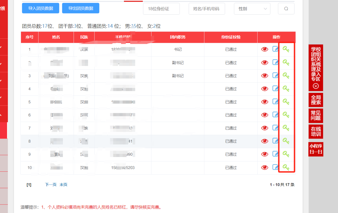 4.选择需要改密码的同学点击右手边钥匙按钮